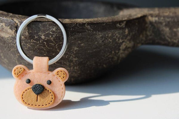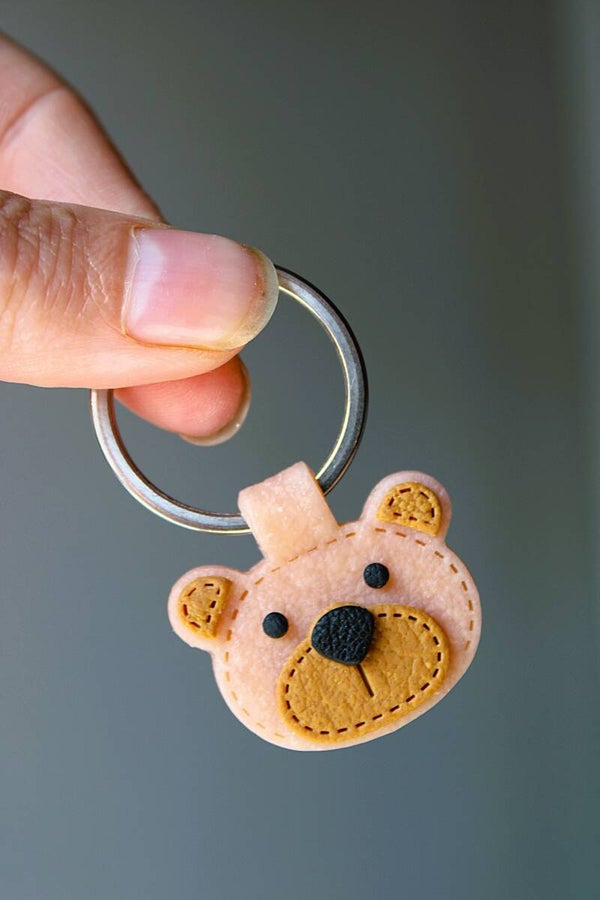 De dieren sleutelhangers. Het beerje gemaakt van polymeer klei met een kunst lederen look.